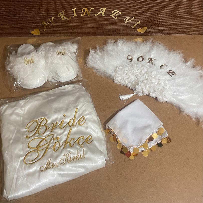 BRİDE İSİMLİ SABAHLİK BRİDE TERLİK BRİDE TAC BRİDE MENDİL BRİDE YELPAZE