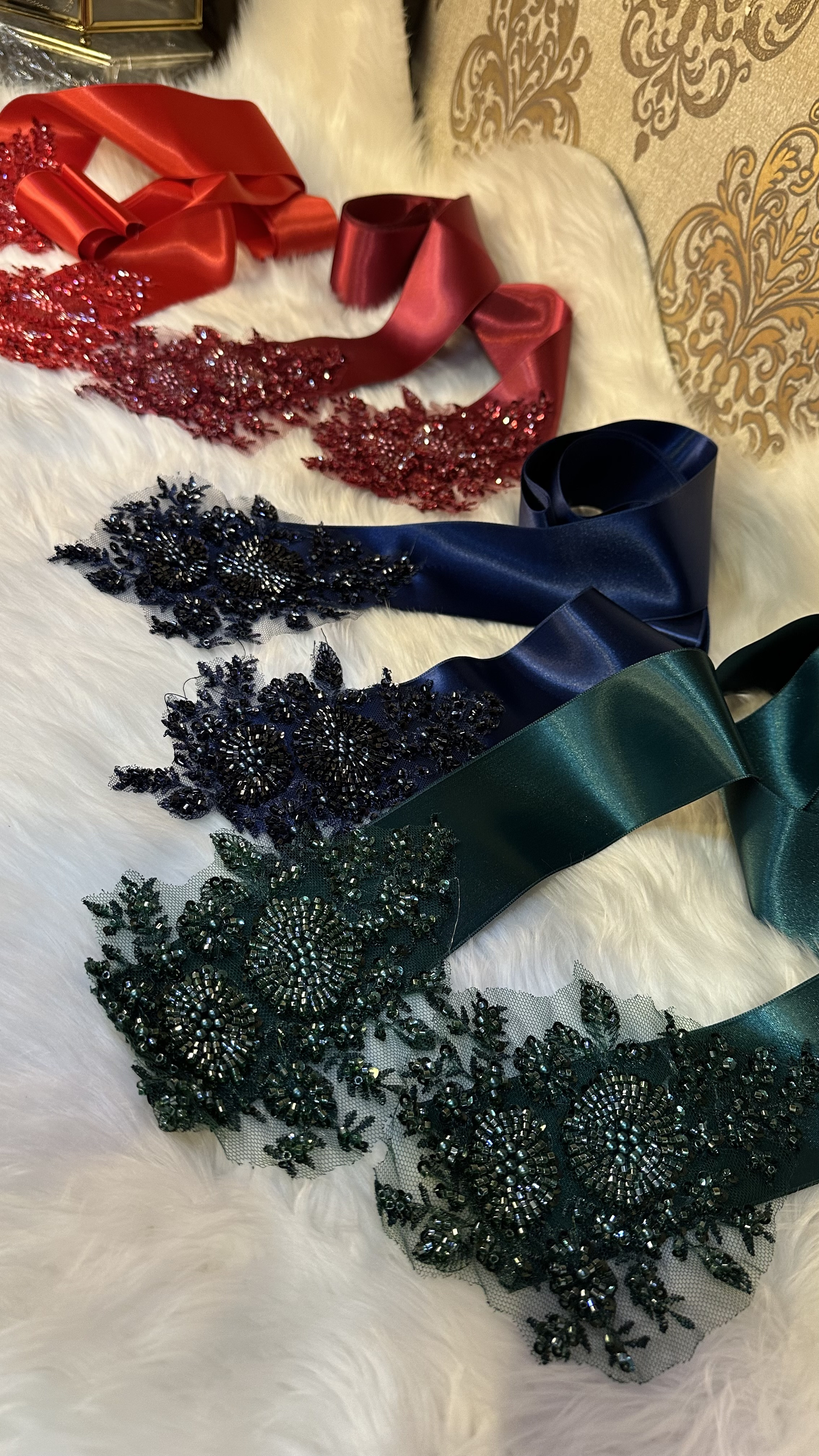 2 METRE İTAL SATEN TAŞ APLİKLİ KUŞAK