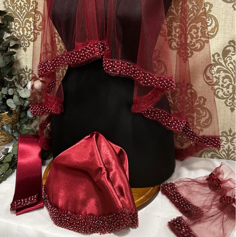BONCUKLU DUVAK SETİ DUVAK KUŞAK ELDİVEN İKİ EL GÜLÜ SATEN MENDİL