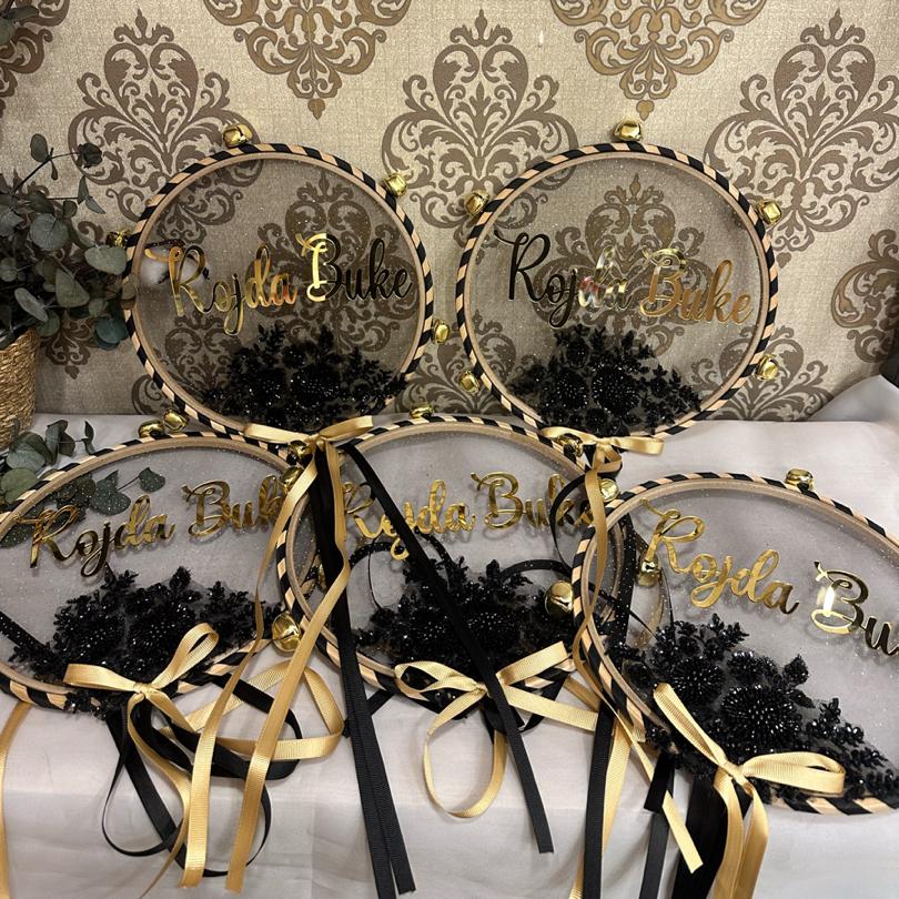 SİYAH KASNAK DEF SİYAH APLİK İŞLEME İSİMLİ CİFT RENK