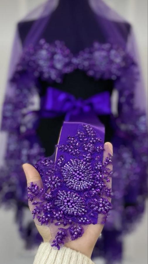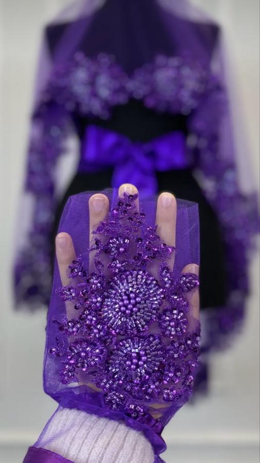 MOR İNCE KENAR TAŞ BONCUK İŞLEMELİ DUVAK KUŞAK ELDİVEN